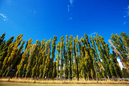 Yellow leaves of poppla trees in autumn season in Gupis valley, Gilgit Baltistan in Pakistan, Asia