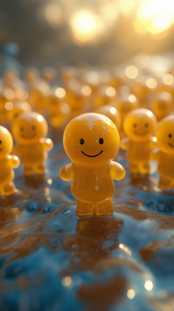 This image features a row of cheerful yellow figurines with smiling faces against a vibrant yellow backdrop, symbolizing fun and positivity in design.