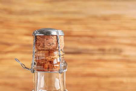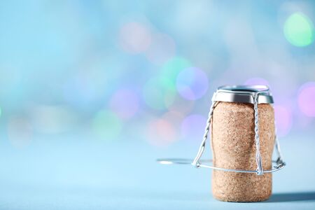 New year composition with champagne cork on a light background. Toned.