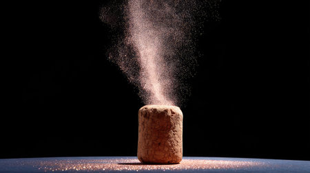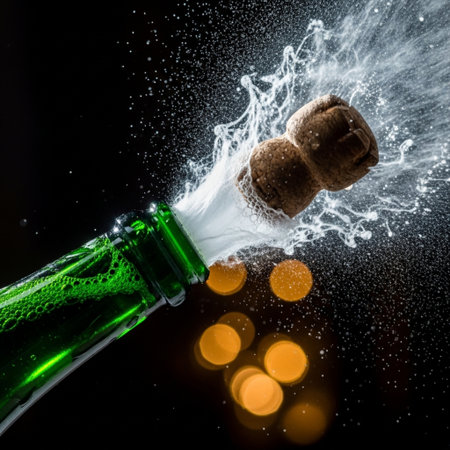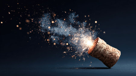 A stunning image of a champagne cork exploding with sparkling dust against a dark background, symbolizing celebration and joy for special occasions.