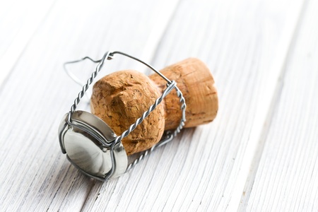 champagne cork on white table
