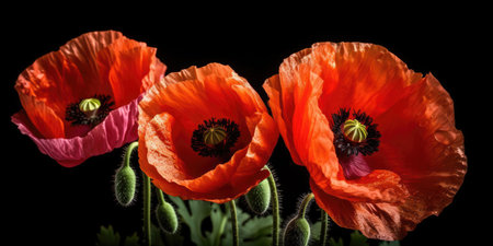 red poppy flowers on black background