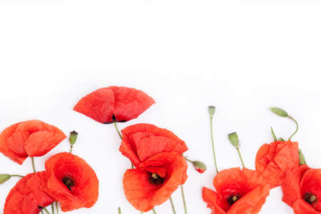 Creative summer composition made of poppies flowers on white background. Beautiful floral layout. nature concept. top view. flat lay.