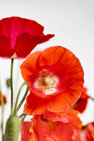 Red poppies on a white background