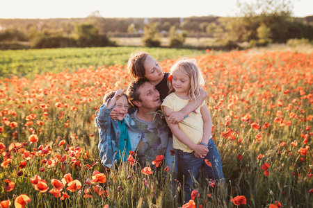 Joyful Family Moment in a Poppy Field