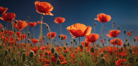 Vibrant red poppies in a summer field