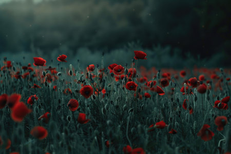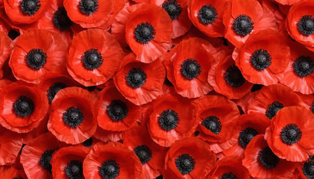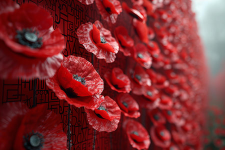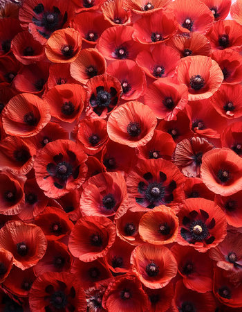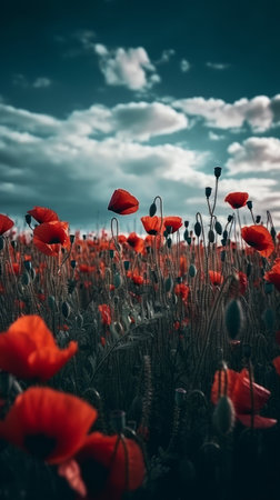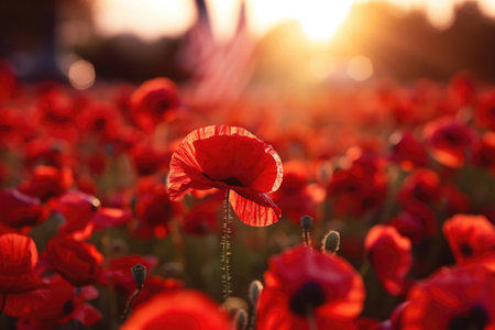 Vibrant red poppies blanket the field, creating a poignant tribute to courage and valor on this solemn day of remembrance.