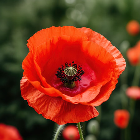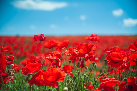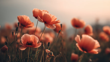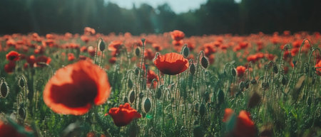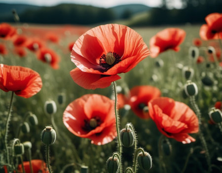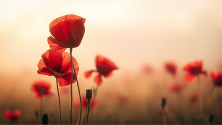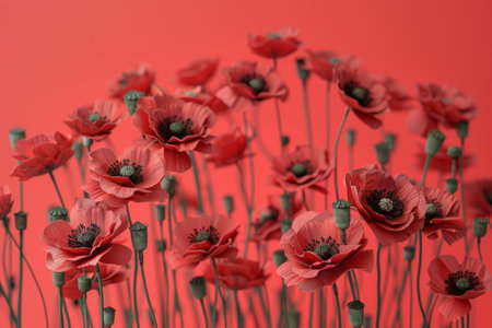 Beautiful red poppy flowers background with delicate petals, perfect for spring themed designs, evoking emotions of nature and freshness