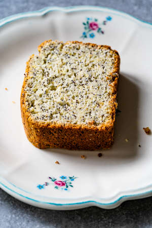 Homemade Lemon Cake Slice with Poppy Seeds served in Plate. Ready to Eat.