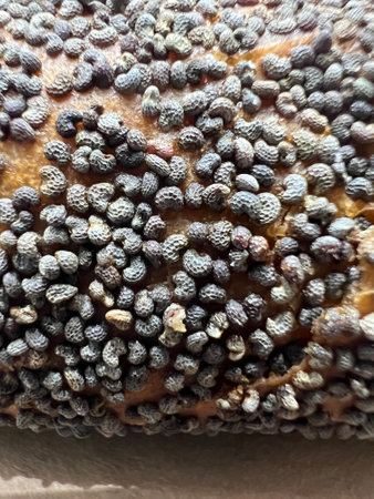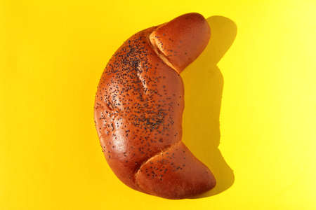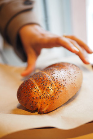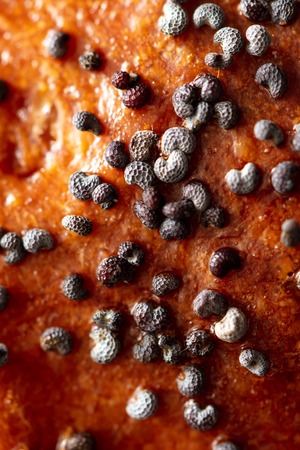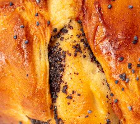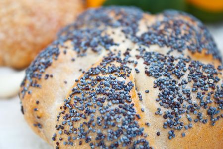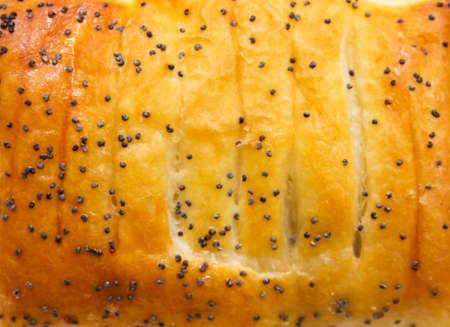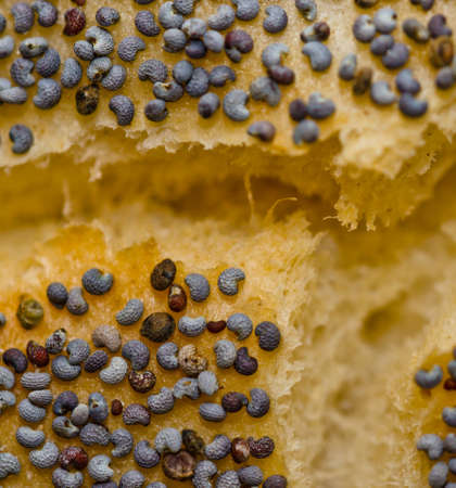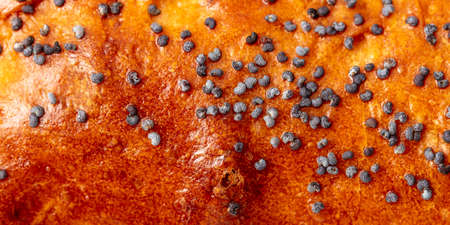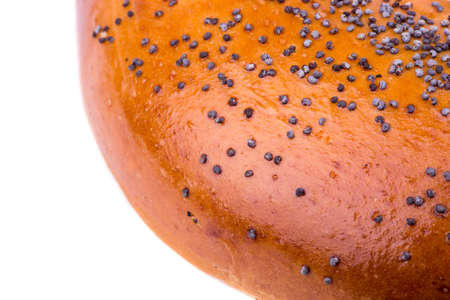 A tasty bun sprenkled with poppy seeds, macro and close up with details