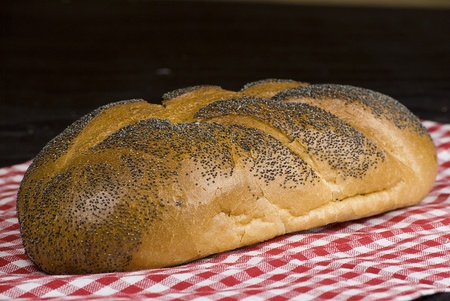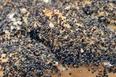Bread with poppy seeds on a black background. Shallow depth of field.