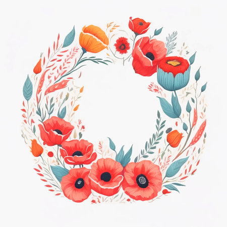 Wreath of poppies on a green background.