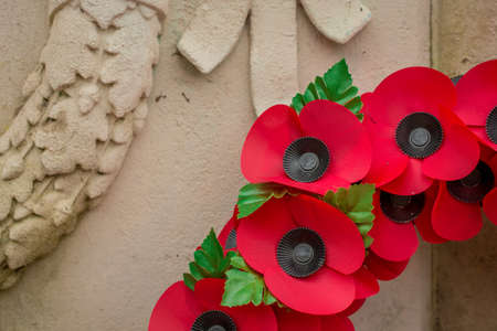 Poppy day great remembrance war world flanders at war memorial. Selective focus.