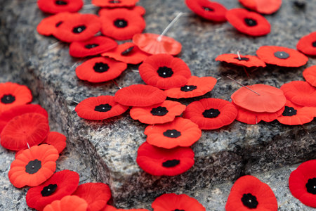 Remembrance Day, red poppy flowers on the Tomb of the Unknown Soldier, National War memorial in Ottawa, Canada.