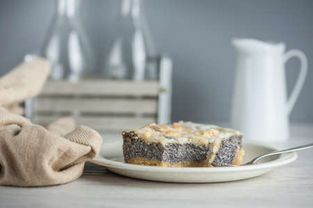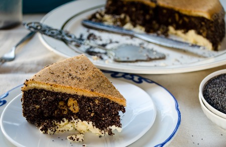 Sweet cake, dessert with cream and poppy seeds
