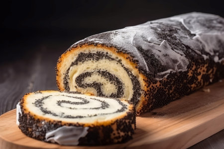 Poppy seed roll. Food slice fresh. Generate Ai
