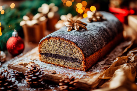 Homemade poppy seed roll cakes for Christmas table