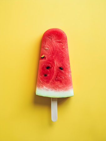 Watermelon Popsicle on a yellow Background with Copy Space