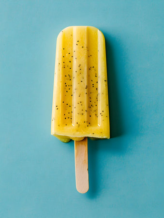 Sky Blue Popsicle on a summery yellow background with copy space
