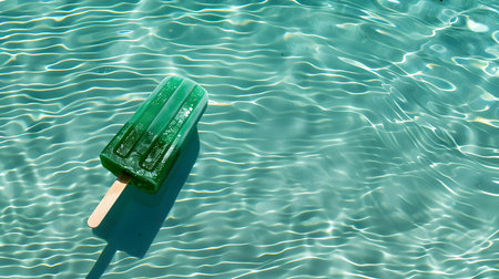 Emerald Popsicle on a Pool Water Background. Summer Vacation Background