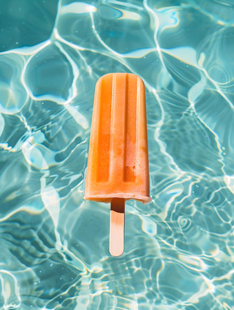 Orange Popsicle on a Pool Water Background. Summer Vacation Wallpapers
