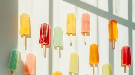 Vibrant ice pops arranged attractively evoking summer joy and refreshing flavors.