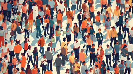 A stunning aerial view of a diverse crowd surrounding a single figure, showcasing unity, individuality, and vibrant colors in a modern artistic design.