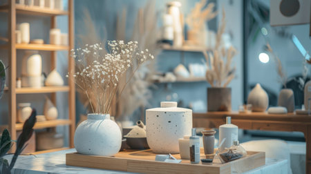 A cozy home decor setup featuring ceramic vases with dried flowers, creating a warm and inviting atmosphere. Perfect for interior design and lifestyle themes.