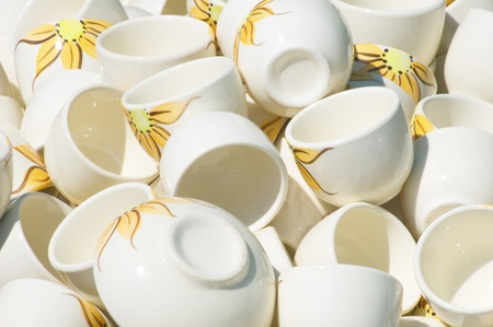 Ceramic dishes, tableware and jugs sold on Kaziuko muge or Kaziukas spring fair, traditional Easter market in Vilnius, Lithuania