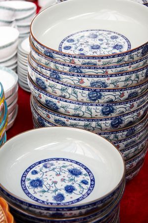 Dishes background (on a moving souvenir market)