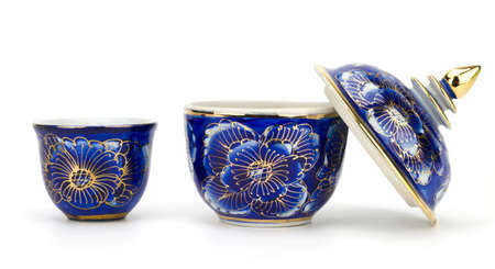 Old ceramic cups with paintings and gold applied