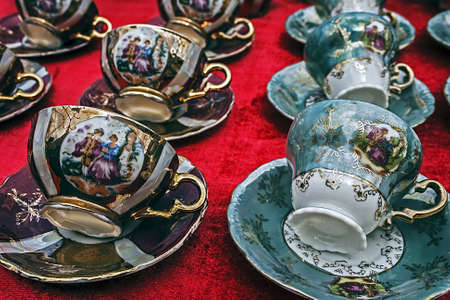 Old ceramic cups with gold applied and paintings