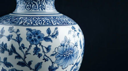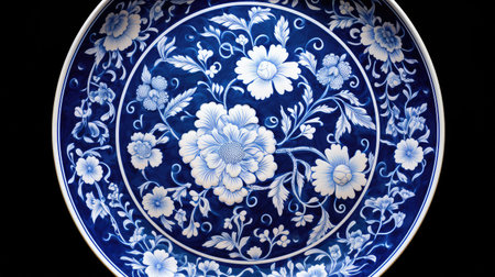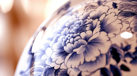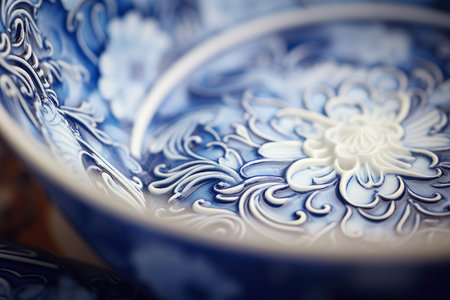 Stunning close-up view of traditional blue and white porcelain showcasing intricate floral patterns, perfect for highlighting craftsmanship and artistic beauty in decor or culinary settings.
