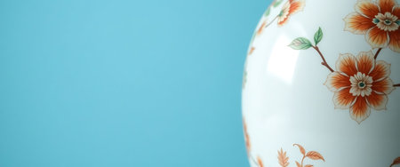 Clean white canvas with ornate blue ceramics outlining the edges, elegant flatlay for branding