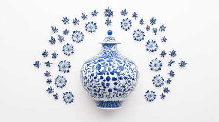 A stunning blue and white porcelain vase surrounded by delicate floral motifs. Perfect for showcasing elegance and traditional craftsmanship in home decor.
