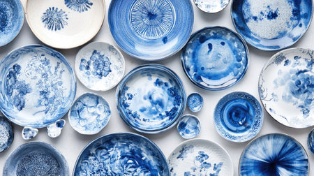 A stunning array of blue and white decorative plates showcasing intricate designs and textures. Perfect for kitchen decor or art inspiration.