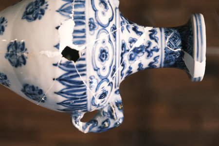 A real, broken ceramic vase on display at the Jingdezhen Museum in Jiangxi, China