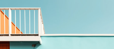 A minimalistic railing stands out against a softly colored wall showcasing contemporary architectural design. The subtle hues enhance the elegance of the structure during daylight.