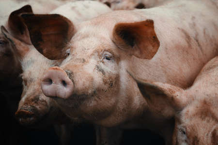 Pink pigs on the farm. Swine at the farm. Meat industry. Pig farming to meet the growing demand for meat.