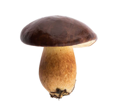 Boletus edulis: white fungus, and type species of the genus Boletus. Forest porcini mushroom isolated on white background. close up. high quality photo