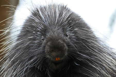 North American or common porcupine (Erethizon dorsatum) is standing up