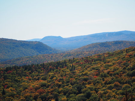 Landscape of the sea and the mountains from Charlevoix in Quebec.