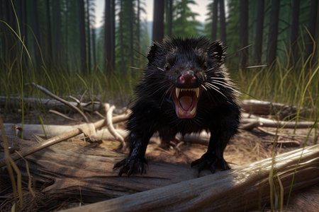 In the forest, a porcupine walks on the ground. Image generated with Generative AI