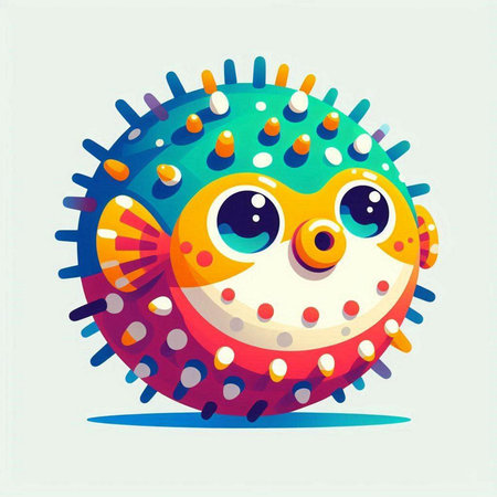 the blowfish, also known as pufferfish, is showcased in this stunning isolated illustration on a pure white background, devoid of any shadows, highlighting its unique features and vibrant colors, perfect for marine life enthusiasts and designers seeking aquatic inspiration. ai generated