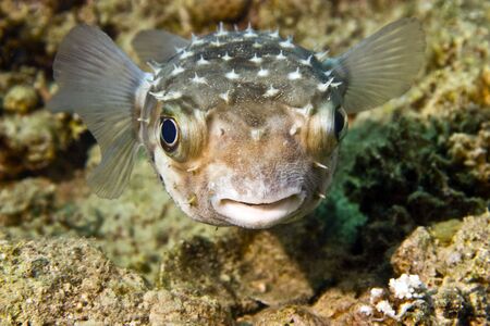 puffer fish with an awful close up face in front view