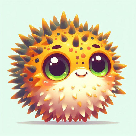 Capture the innocence and charm of this endearing creature with its captivating big eyes, An inflated texture of a blowfish, AI Generated