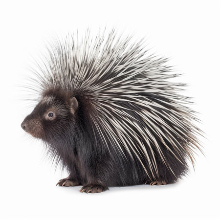 the porcupine, a prickly yet adorable creature, is showcased in stunning detail in this 3d render, set against a crisp white background, highlighting its unique quills and curious expression, perfect for nature enthusiasts and animal lovers alike, exploring the fascinating world of wildlife and mammals. ai generated