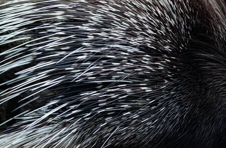 Quills of the porcupine closeup texture. Porcupine or Hystrix Indica (lat.) needle spikes closely. Wild animals background