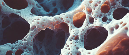 Organic cellular structure osteons matrix. Futuristic bio cement. Generative AI.