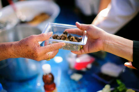 The hands of poor have been aided by charity food to alleviate hunger: The concept of social sharing